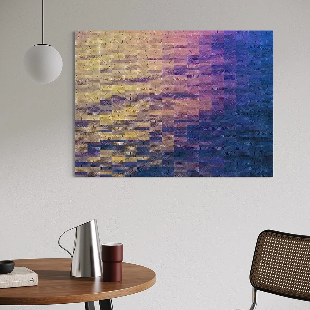 Mosaico digital com 952 imagens em alta resolução. A paleta cromática cuidadosamente selecionada cria zonas de contraste e harmonia, evocando uma dinâmica quase musical entre cor e forma. Ao mesmo tempo, o uso da repetição como estrutura formal amplia a percepção das sutis diferenças entre os elementos, destacando nuances de textura e variação tonal que remetem tanto à natureza quanto à linguagem visual da arte abstrata.