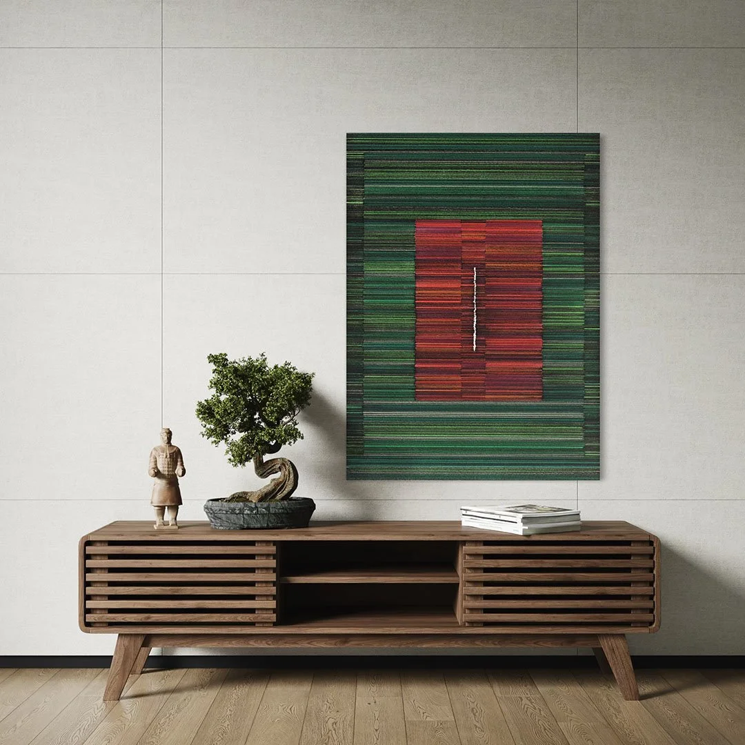 Mais do que documentar a beleza das penas, a obra cria uma abstração poética que combina rigor digital e vitalidade natural, evocando reflexões sobre singularidade, repetição e a fluidez da cor na natureza. O resultado é uma imagem contemplativa, que oscila entre a precisão geométrica e a delicadeza orgânica.